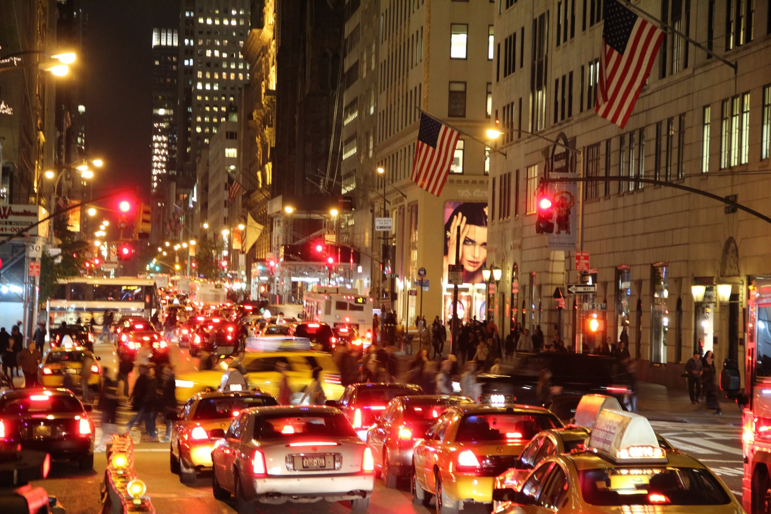Roy Googin, “Gridlock resulting from vehicles and pedestrians ‘blocking the box’ at the intersection of 1st Avenue and 57th Street in New York City” (November 19, 2007. CC BY-SA 3.0, https://commons.wikimedia.org/wiki/File:New_York_City_Gridlock.jpg).